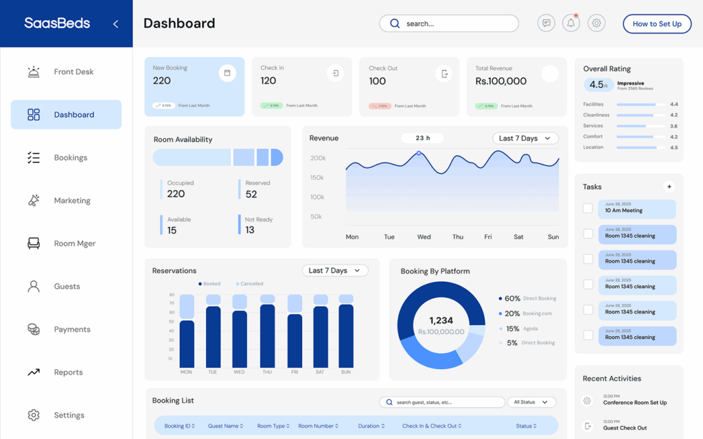 SaasBeds is an all-in-one hotel booking management software built to simplify your daily operations.
